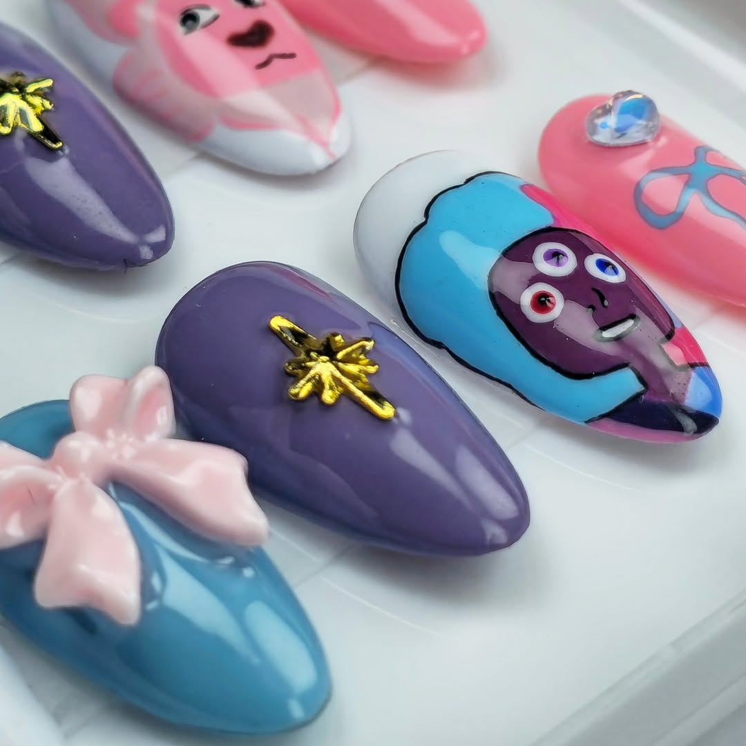 Quer unhas inspiradas em personagens, bandas, idols, animes ou desenhos? Fazemos tudo sob medida!